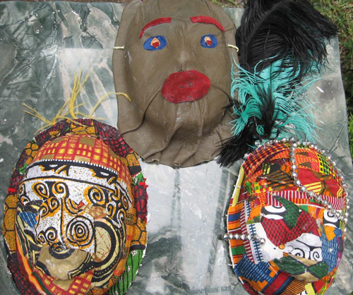 - Figure 2: Masks decorated with madras fabric reflecting historical traditions.