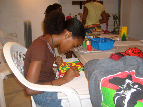 - Figure 4: Creating textile patterns was serious work engaging the students’ full attention.