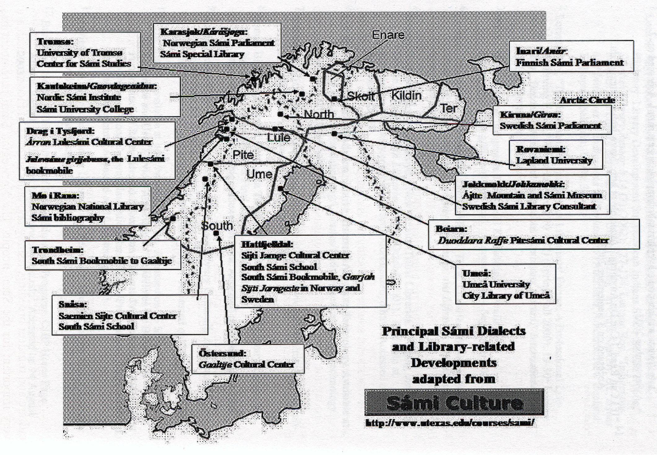 Map - Principal Sámi Dialects and Library-related Developments